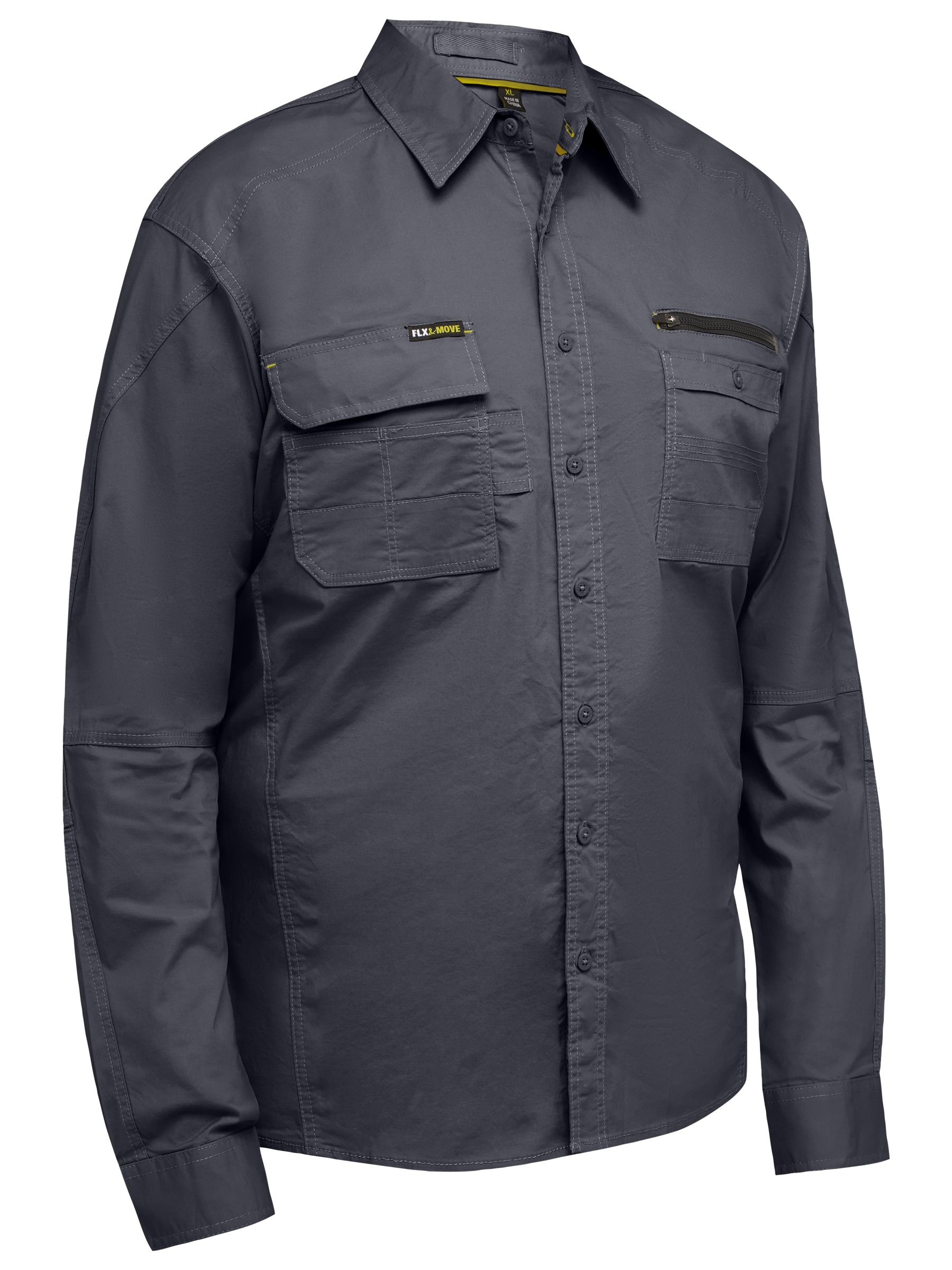 - Left hand side chest pocket features a patch pocket with button closure, pen division and a second pocket with zipper closure